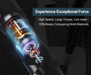 Trotz seiner kompakten Größe bietet er echte Leistung mit einer Maximaldrehzahl von bis zu 30.000 U/min und einem Drehmoment von bis zu 200 gcm und sorgt so für Effizienz und Kraft bei jeder Aufgabe.