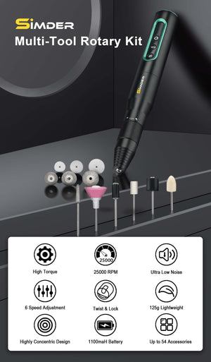 S2 ist mehr als nur ein Werkzeug – es ist eine allumfassende, multifunktionale Lösung für Heimwerker, Kreative und Innovatoren gleichermaßen. Es ist zum Polieren , Bohren , Schleifen , Schneiden , Nagelpflegen und sogar Schnitzen ausgestattet, rationalisiert Ihre Projekte und steigert die Effizienz, was es zu einem unverzichtbaren Werkzeug für jedes kreative Vorhaben macht.