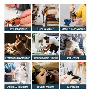 Von Heimwerkern und professionellen Handwerkern bis hin zu Gadget-Moddern , Maniküristen oder Haustierbesitzern ist S2 das ultimative Werkzeug für Kreative , Macher und Bastler gleichermaßen. Ob Sie Ihr Zuhause verschönern, Kunst schaffen oder Maniküren perfektionieren, S2 ermöglicht es Ihnen, Ihrer Kreativität mit Präzision und Leichtigkeit freien Lauf zu lassen.